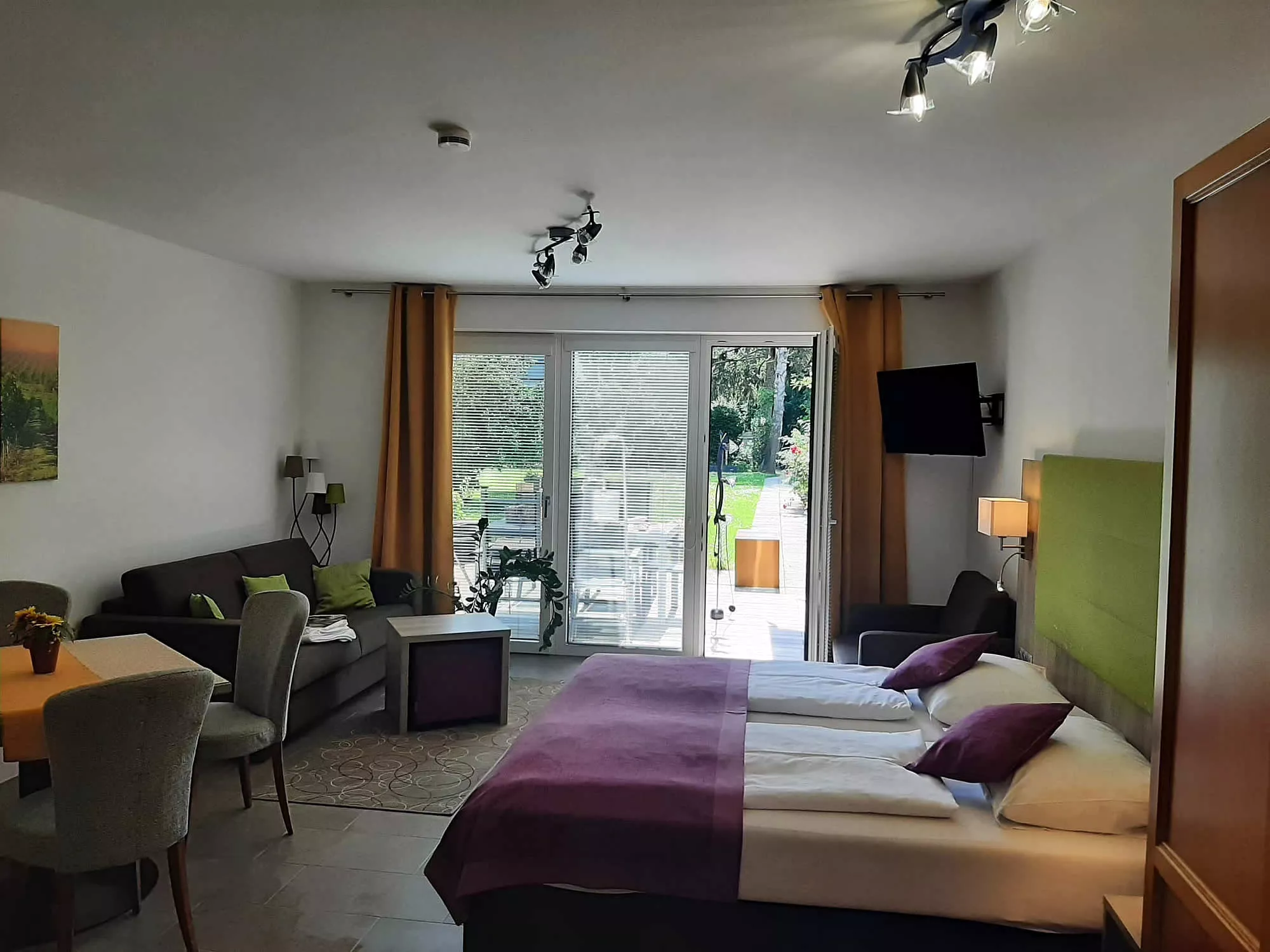 Die Ferienwohnung befindet sich im Erdgeschoss und hat direktem Zugang zu einer Terrasse mit Gartenblick und Morgensonne.